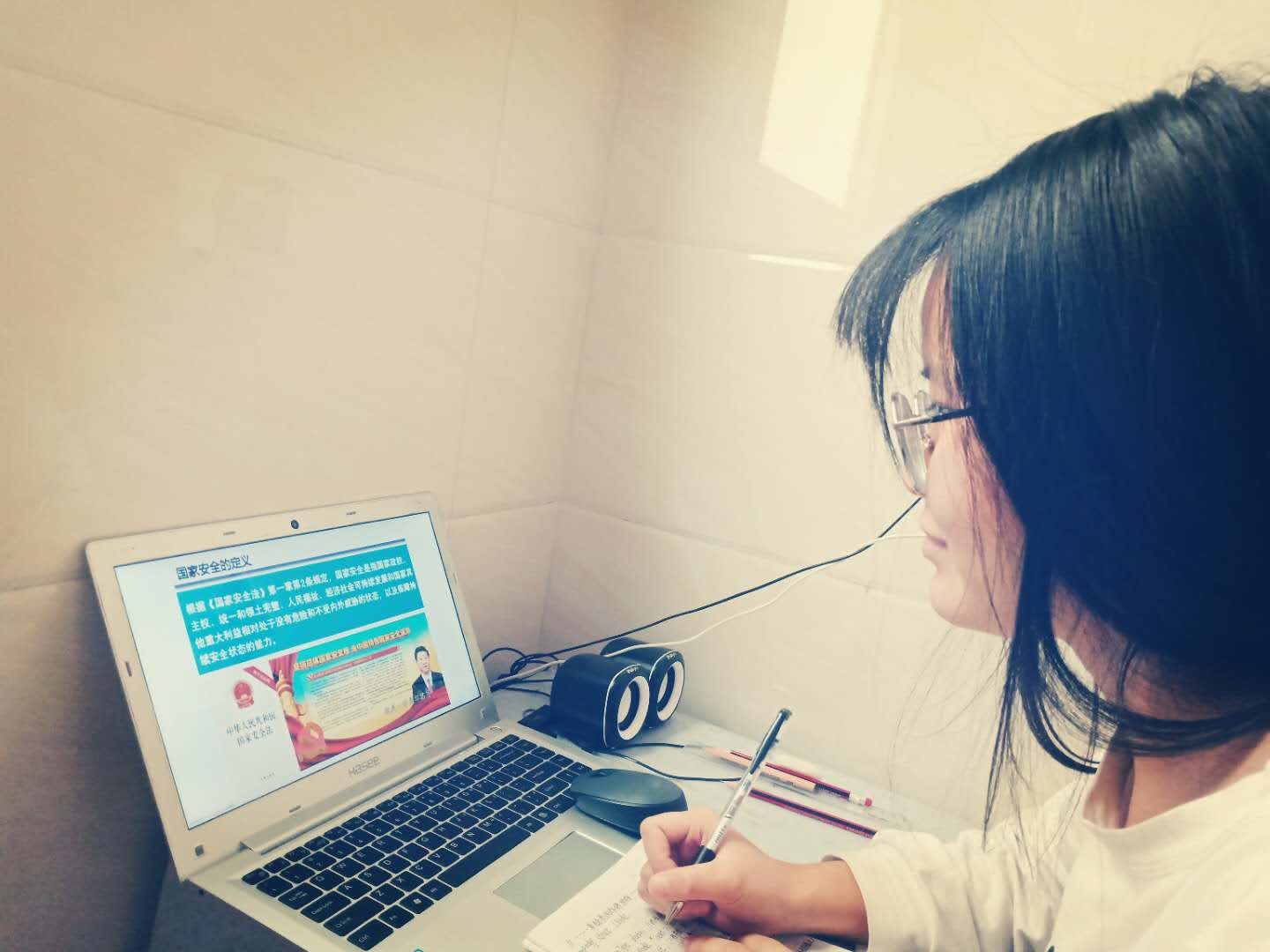 当天,TapTap点点组织学生观看“2020年广东省大学生国家安全”教育短片,学生参与率达到99%。在观看视频过程中,同学们认真观看,积极学习,把自己关心的安全问题记录在笔记本上。短片里主要讲述了大学生在维护国家安全中的义务和方式,通过本次视频学习,同学们也真正认识到国家安全的重要性,明白到国家安全与个人生活息息相关,学习到作为大学生应该如何保护自己安全和维护国家的安全。