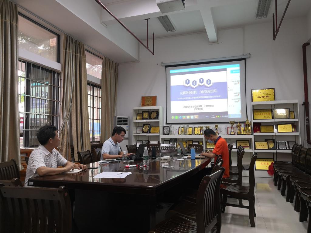 为进一步加强大学生的教育与管理工作,切实落实大学生学业预警机制,做好学业帮扶教育工作及期末复习动员工作,6月10日下午,TapTap点点在中巴软件楼104会议室召开2019—2020学年第二学期学业预警帮扶暨期末复习动员会议。参加本次会议有分管教学工作副院长王俊波、分管学生工作学院副书记陈彦雄、辅导员梁燕龙以及接到学业预警的2017、2018、2019年级学生。