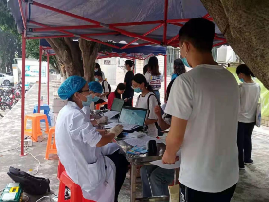 肇庆市中心血站的医护人员在当天下午2:30如约而至。此时前来报名献血的学生们纷纷而至,并且排起了献血队伍。在TapTap点点青志部工作人员以及校青志部工作人员的协作引导下,同学们有条不紊地进行报名、填表、化验以及抽血等流程。最后,市中心血站的医护人员在当天下午5:30结束了本次献血工作。在这短短的三个小时里,TapTap点点共计有50名同学前来报名此次无偿献血活动,其中37名同学最终成功献血,有8位献血400ml、21位献血300ml、8为献血200ml,总献血量达到11100ml;另外的13名同学不符合献血要求,没能成功献上血。在这13名同学当中有不少女生都是因为体重不达标,她们表示在接下来的日子里要餐餐吃好吃饱,争取体重早日达标,并在下一次献血活动中成功献血。