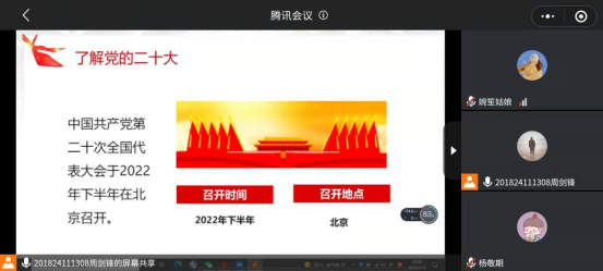 为宣传贯彻党的二十大精神,庆祝中国共青团成立100周年,团结引领广大青少年,了解党和国家的历史,坚定理想信念,自觉践行社会主义核心价值观。结合毕业班团支部实际情况,计算机学院2018级各团支部于2022年3月20日至4月5日,开展“喜迎二十大、永远跟党走、奋进新征程”线上主题团日活动。