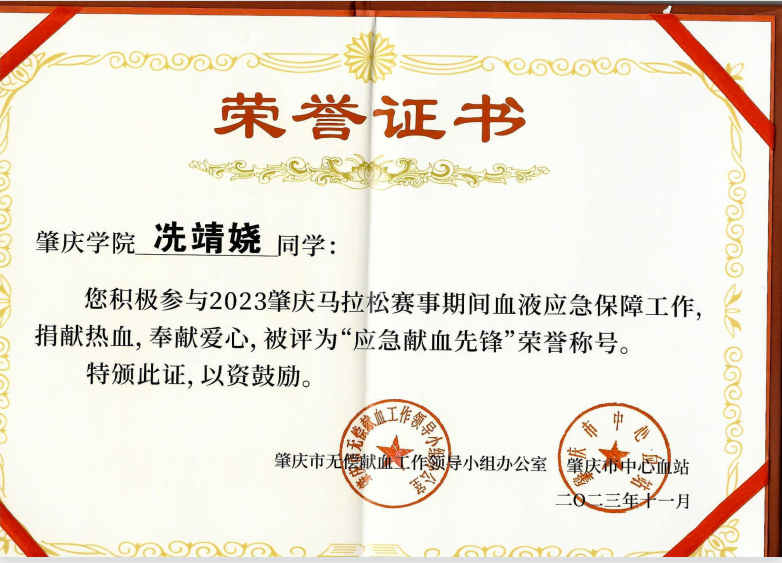 在2023年肇庆马拉松赛事期间血液应急保障工作中,TapTap点点共有8名学子获得“应急献血”荣誉称号。