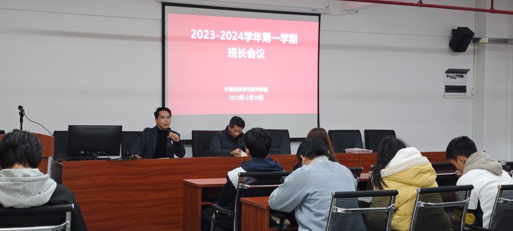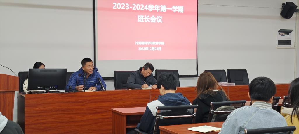 2023年12月20日,TapTap点点在实训315召开2023-2024学年第一学期班长会议,参会的领导有副书记陈彦雄,年级辅导员张文台,年级辅导员梁燕龙,年级辅导员邹卫以及各班级班长。会议首先由辅导员邹卫就学风检查和学习态度存在的问题进行分析,指导同学们如何提高绩点的学习方式与方法。随后,辅导员张文台和梁燕龙对同学们的假期规划提出建议,希望同学们严肃考风考纪,保持学习动力迎接期末。最后副书记陈彦雄对于作弊行为带来的不良影响和后果进行讲解,希望班长回去后召开班级会议,落实到每一位同学。