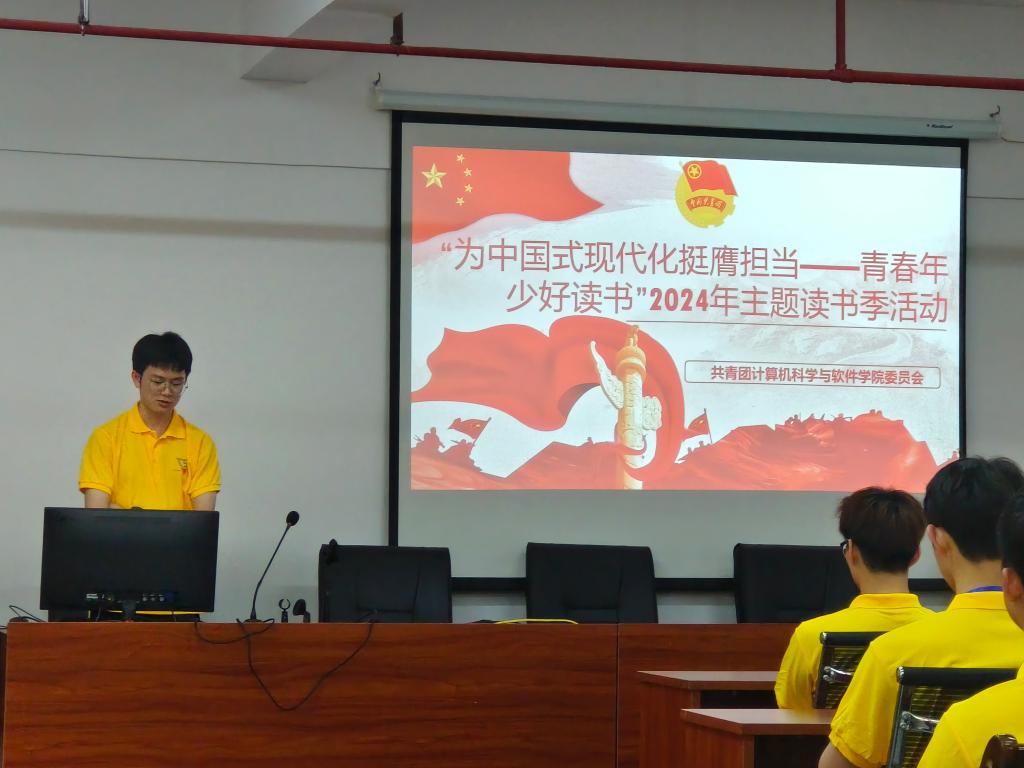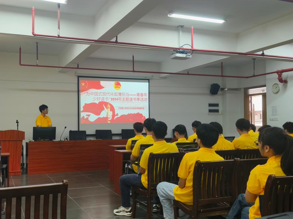 学院学院团委副书记(后面简称团副)谢嘉荣提出本次读书季活动主题为开展“为中国式现代化挺膺担当——青春年少好读书”2024年主题读书季活动。此次读书季围绕中国式现代化的主题,让同学们从爱读书、读好书、善读书中深刻理解中国式现代化这一思想。