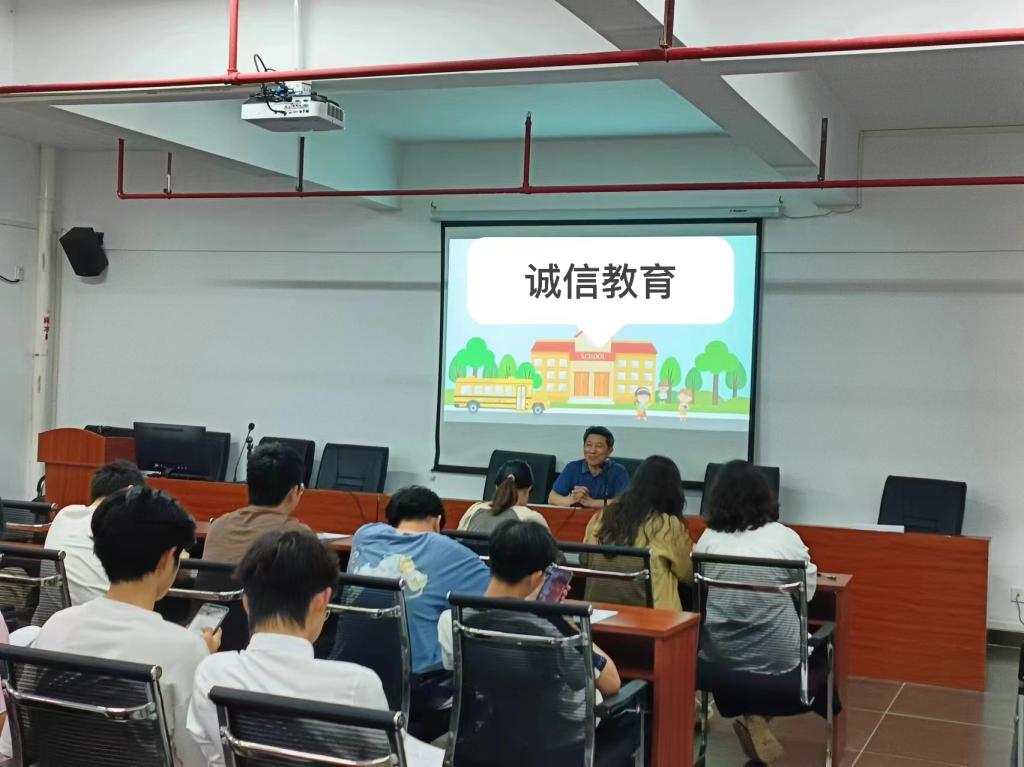 学院党委陈彦雄副书记以《树立诚信观念,强化法律意识,常怀感恩之心,用实际行动践行诚信》为题作了宣讲。陈副书记在讲话中强调,诚信在个人成长、社会发展和经济建设中具有关键作用,是立身之本、成事之基。他指出,无论是在人际交往、工作还是学习中,坚守诚信都是不可或缺的品质。