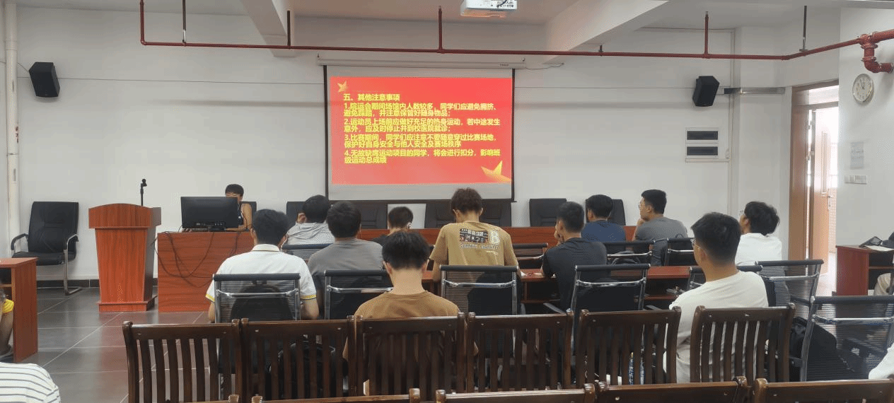 会议还对赛后安排进行了说明,要求各班在院运会结束后负责整理场地卫生并收拾物资。此外,会议提醒所有参与者注意安全,避免拥挤和踩踏,做好热身,以及不要随意穿越比赛场地。