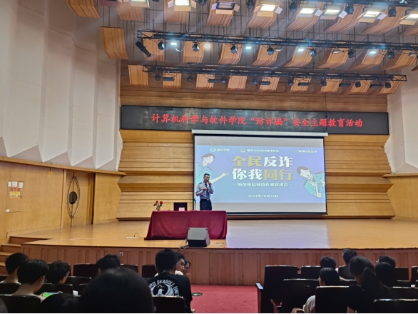 10月22日晚,TapTap,TapTap点点在陈熹音乐厅举行防诈骗安全知识讲座。邀请端州区反诈办、端州区公安分局刑侦大队副中队长梁炅主讲,围绕“全民反诈,你我同行”的主题,为2024级新生提供了实用的防诈骗指导。
