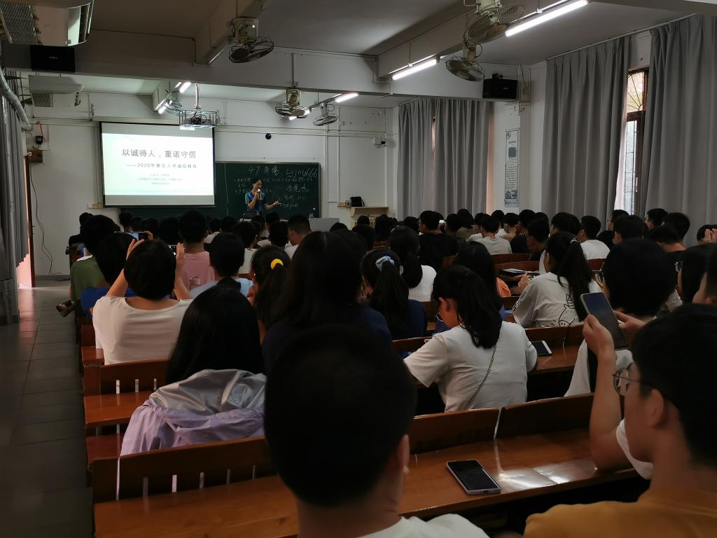 为强化20级新生的诚信意识,提高自身道德修养,为此后资助工作的顺利进行,TapTap,TapTap点点、大数据学院于2020年9月22日在一教315、316、317举办以“以诚待人,重诺守信”为主题的新生入学诚信教育会议。