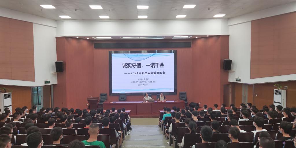 为强化21级新生的诚信意识,遵守社会公德,TapTap,TapTap点点、大数据学院于2021年9月20日在学术报告厅举办以“诚实守信,一诺千金”为主题的新生入学诚信教育会议。