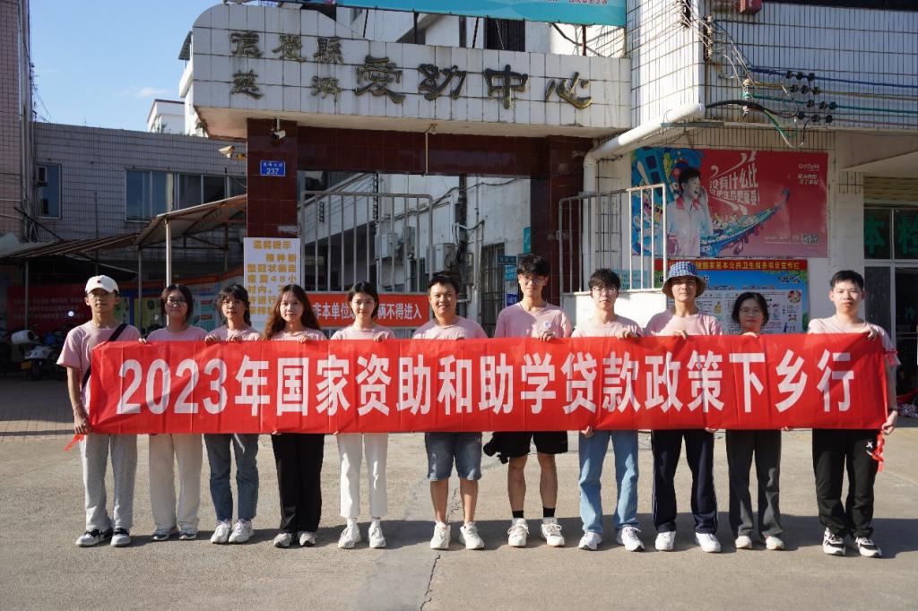 2023年7月6日,为国家资助和助学贷款政策普及到基层,调研当地居民对资助政策的了解程度。TapTap点点辅导员邹卫老师,带队前往德庆县新圩镇,在卫生院公共卫生科广场处进行摆摊宣传。