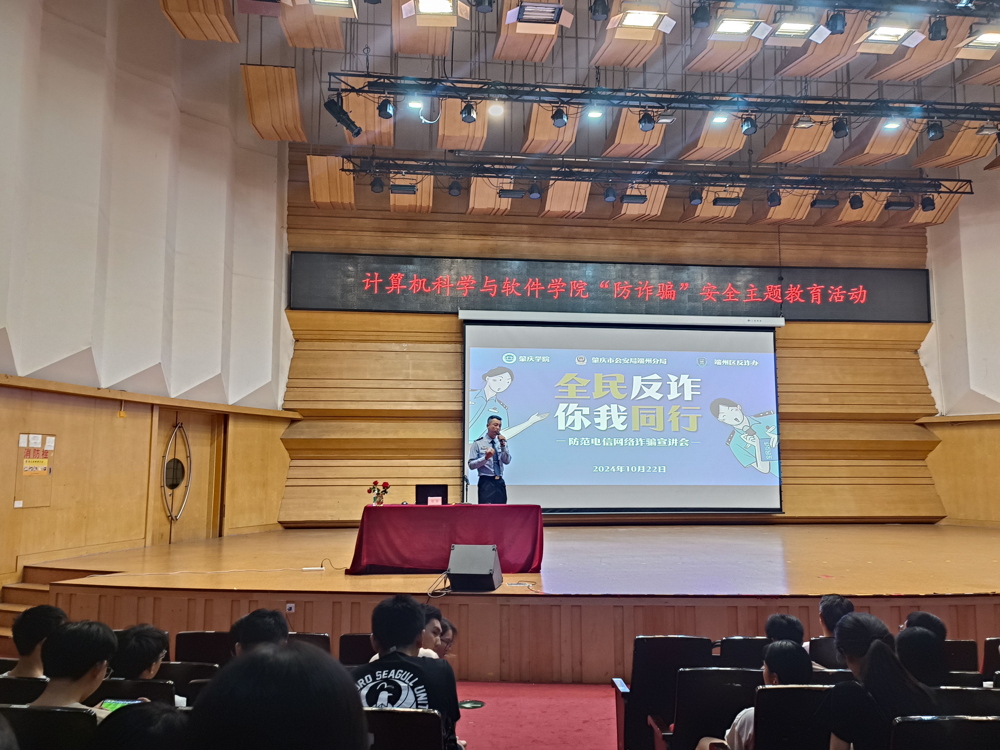 10月22日晚,TapTap,TapTap点点在陈熹音乐厅举行防诈骗安全知识讲座。邀请端州区反诈办、端州区公安分局刑侦大队副中队长梁炅主讲,围绕“全民反诈,你我同行”的主题,为2024级新生提供了实用的防诈骗指导。