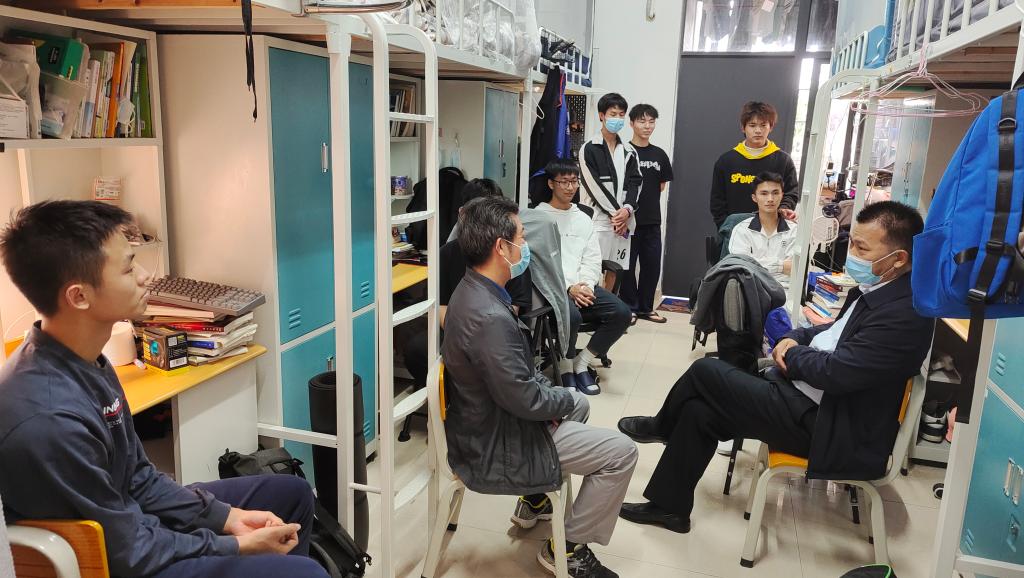 11月30日,联系TapTap点点学校领导、学校帮扶队长刘怡军深入基层,走访联系TapTap点点21级物联网1班学生宿舍,了解学生当前线上学习、日常生活、身心健康等情况。TapTap点点党委副书记陈彦雄、辅导员杨玉孟陪同