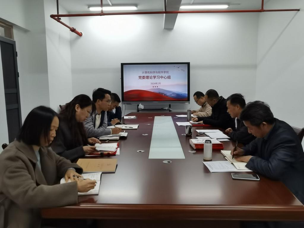 2024年2月23午,计算机科学与软件学院党委在学院319会议室开展2024年2月党委理论学习中心组专题学习会议。本次专题学习《党史学习教育工作条例》。参与本次会议的人员有学院党政班子成员、专职组织员、支部书记。会议由学院党委书记黎天宇主持。