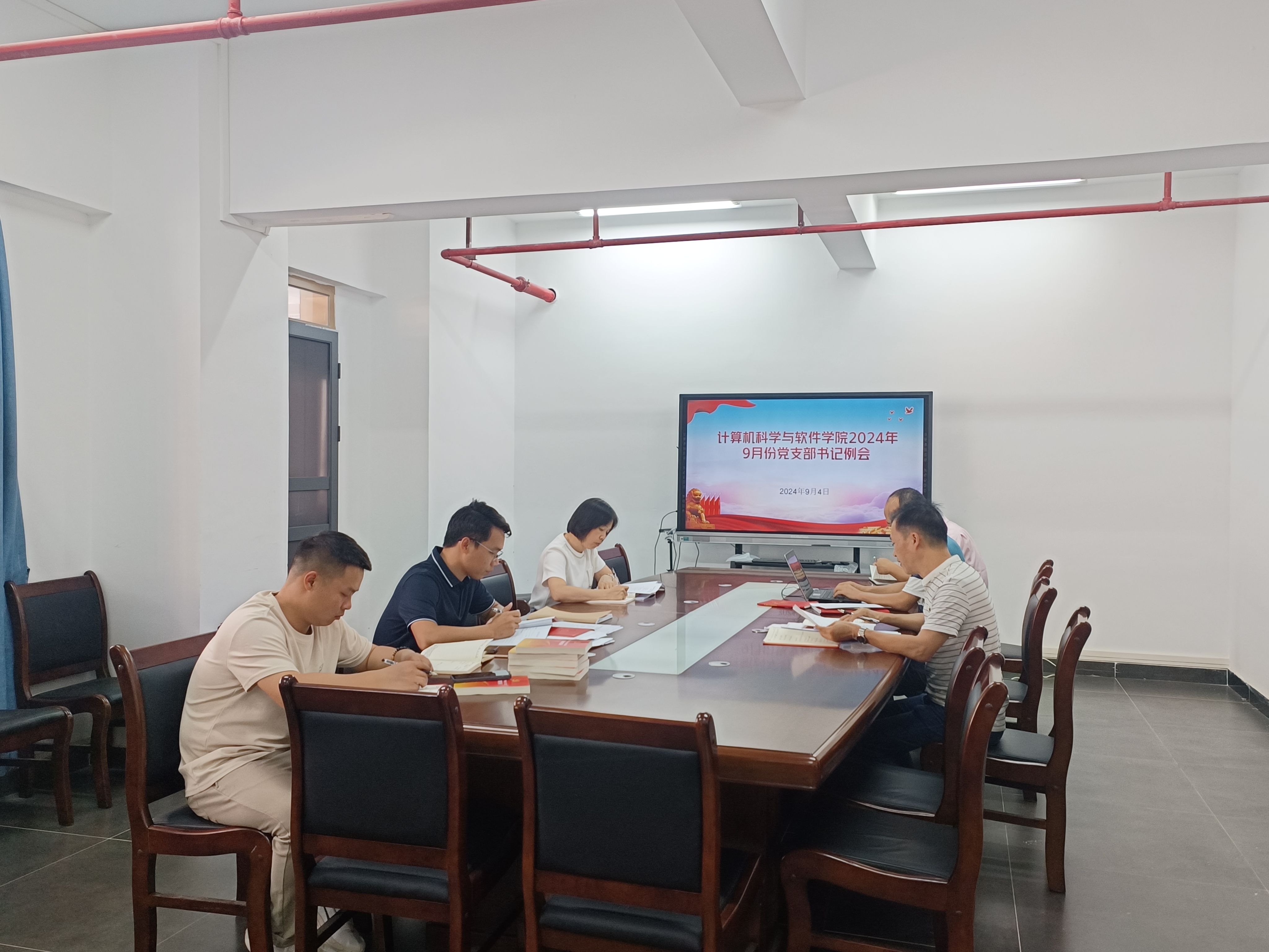 9月4日午,计算机学院党委召开党支部书记工作例会。学院党委书记黎天宇学院副院长(主持行政全面工作)王俊波、各党支部书记、组织员等人参加,会议由黎天宇主持