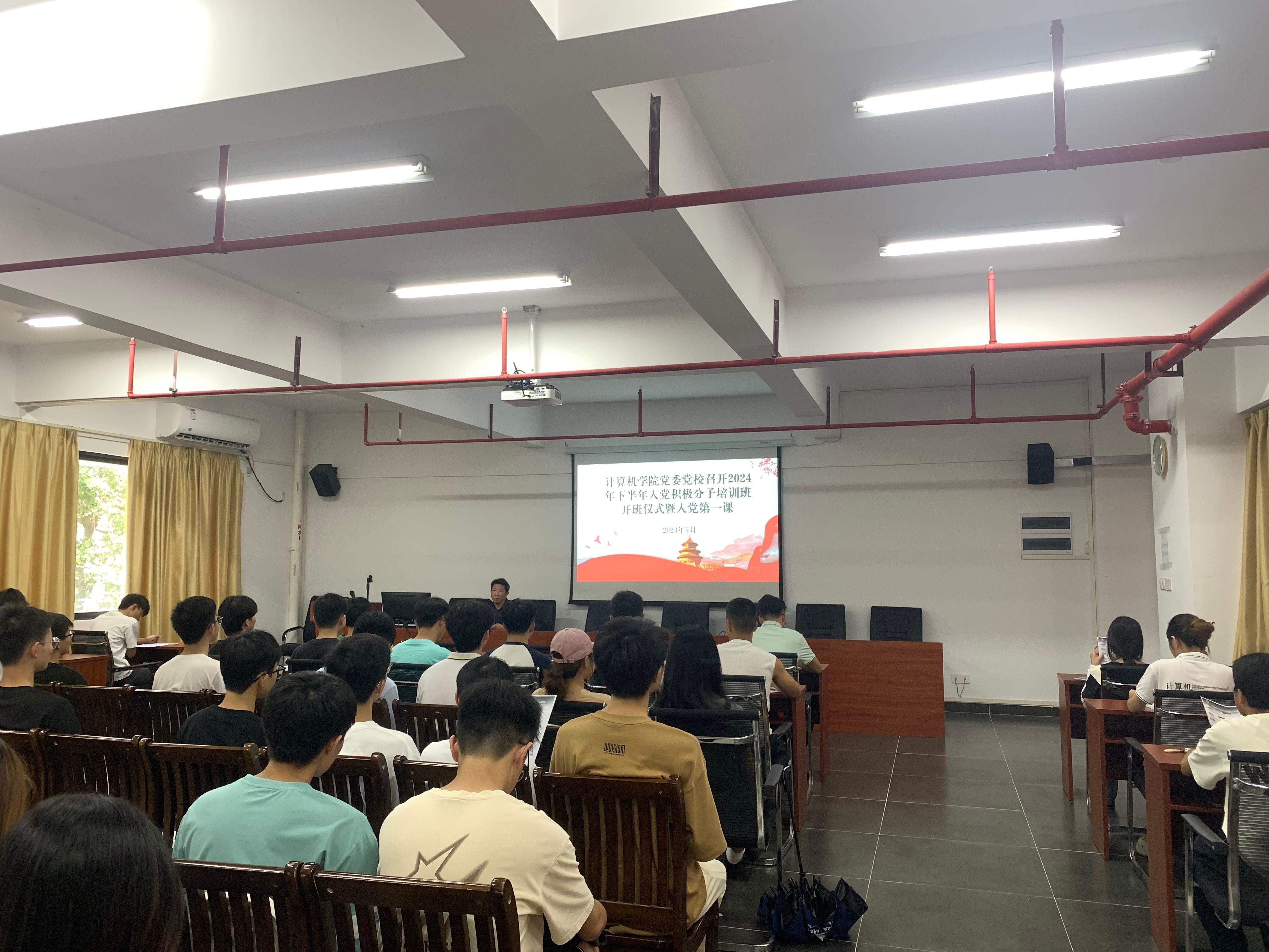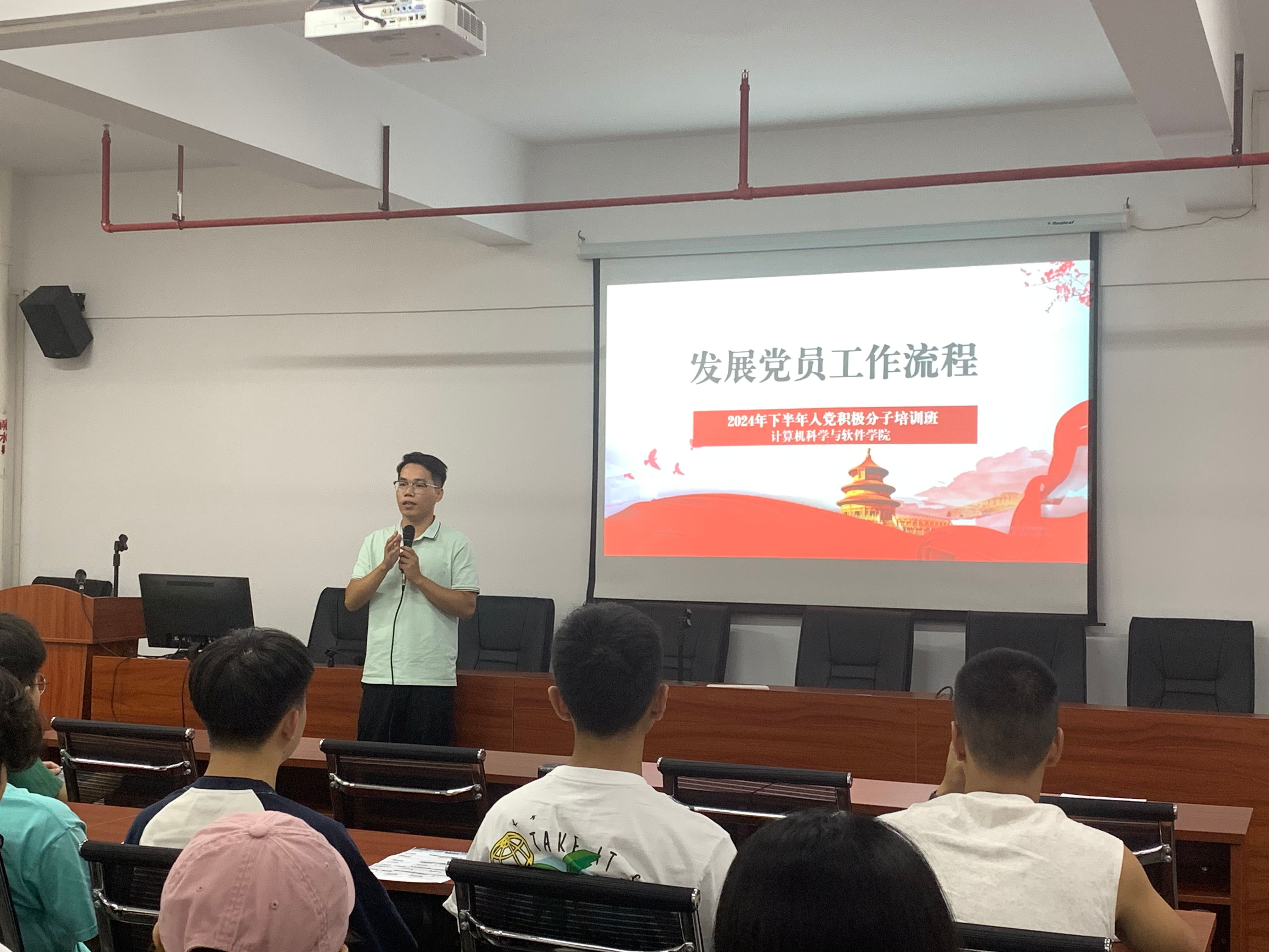 随后,梁燕龙作本次培训班入党第一课,主题为学生党员发展流程。梁老师从递交入党申请书、入党积极分子的确定和培养教育、发展对象的确定和考察、预备党员的接收、预备党员的教育考察和转正五个方面详细介绍了发展党员的工作流程和要求。谢老师指出严格履行党的发展流程是为了保证党员质量,保证党员队伍的先进性和纯洁性。