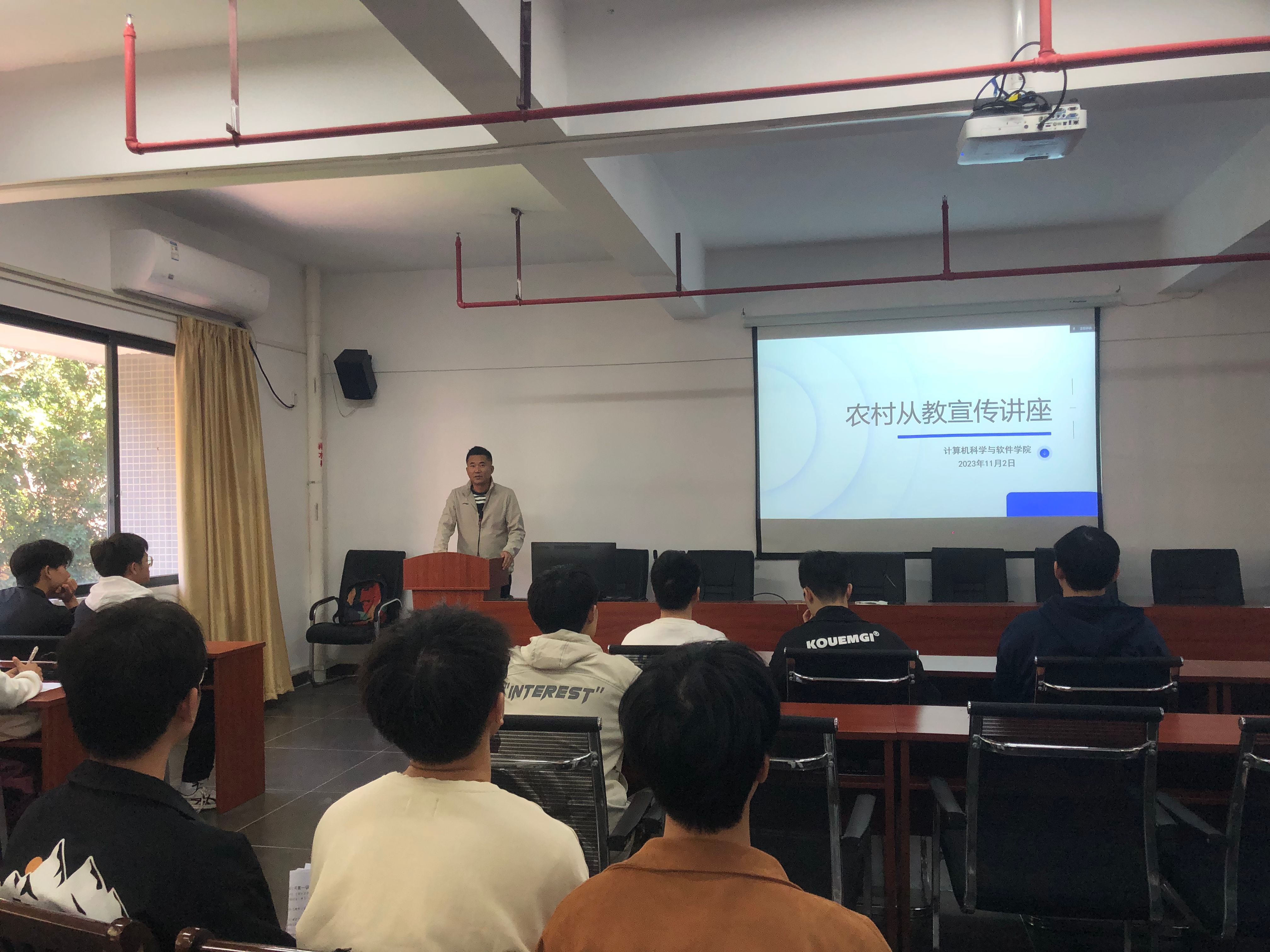 11月2日,我院于实训中心 315 室举办农村从教宣传讲座。此次讲座旨在鼓励学生积极参与公益活动,提升社会实践能力。