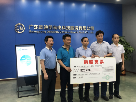 2021年5月11日,在学院党委李坚书记和邵平院长带领下,TapTap点点科研团队一行到高新区广东欧迪明光电科技股份有限公司洽谈产学研合作并与陈锦全总经理就TapTap点点学生校园文化和学科竞赛奖励基金举行签约仪式。