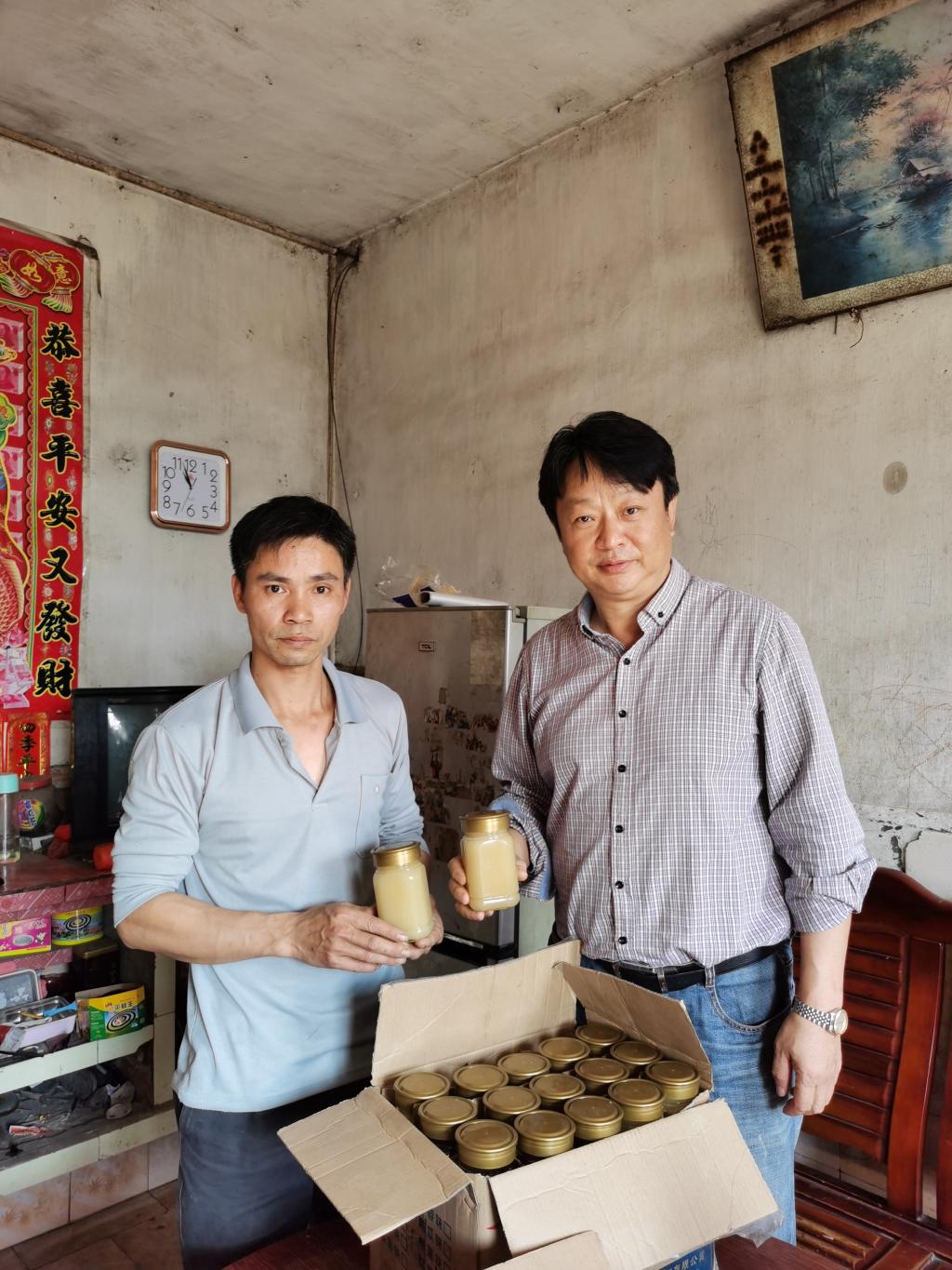 为解决帮扶对象农产品销售,学院积极发动全院教职工及学校兄弟单位教职工大力支持,取得很好的效果,购买了帮扶对象范炳炎家的一批蜂蜜和鸡等农产品,共计人民币10128.00元,既解决了他的农产品销售问题,也增加了收入。帮扶对象表示,感谢学院的关心和帮助。李坚书记和邵平院长鼓励他们不怕困难,勤劳努力,争取早日脱贫致富。