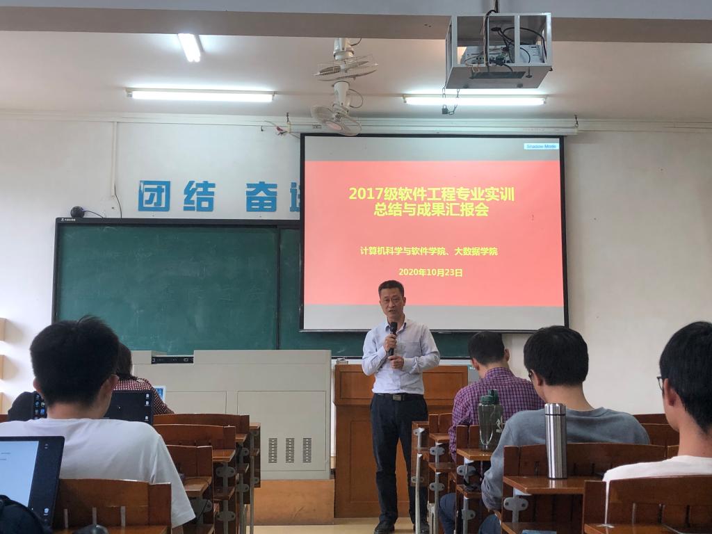 10月23号下午,2017级软件工程专业实训总结与成果汇报会在肇庆学院第二教学楼406举行。出席本次会议的有TapTap点点院长邵平、副院长王俊波,李泓波老师以及砺峰公司、东软教育科技集团公司、中软国际三家公司的领导和老师。