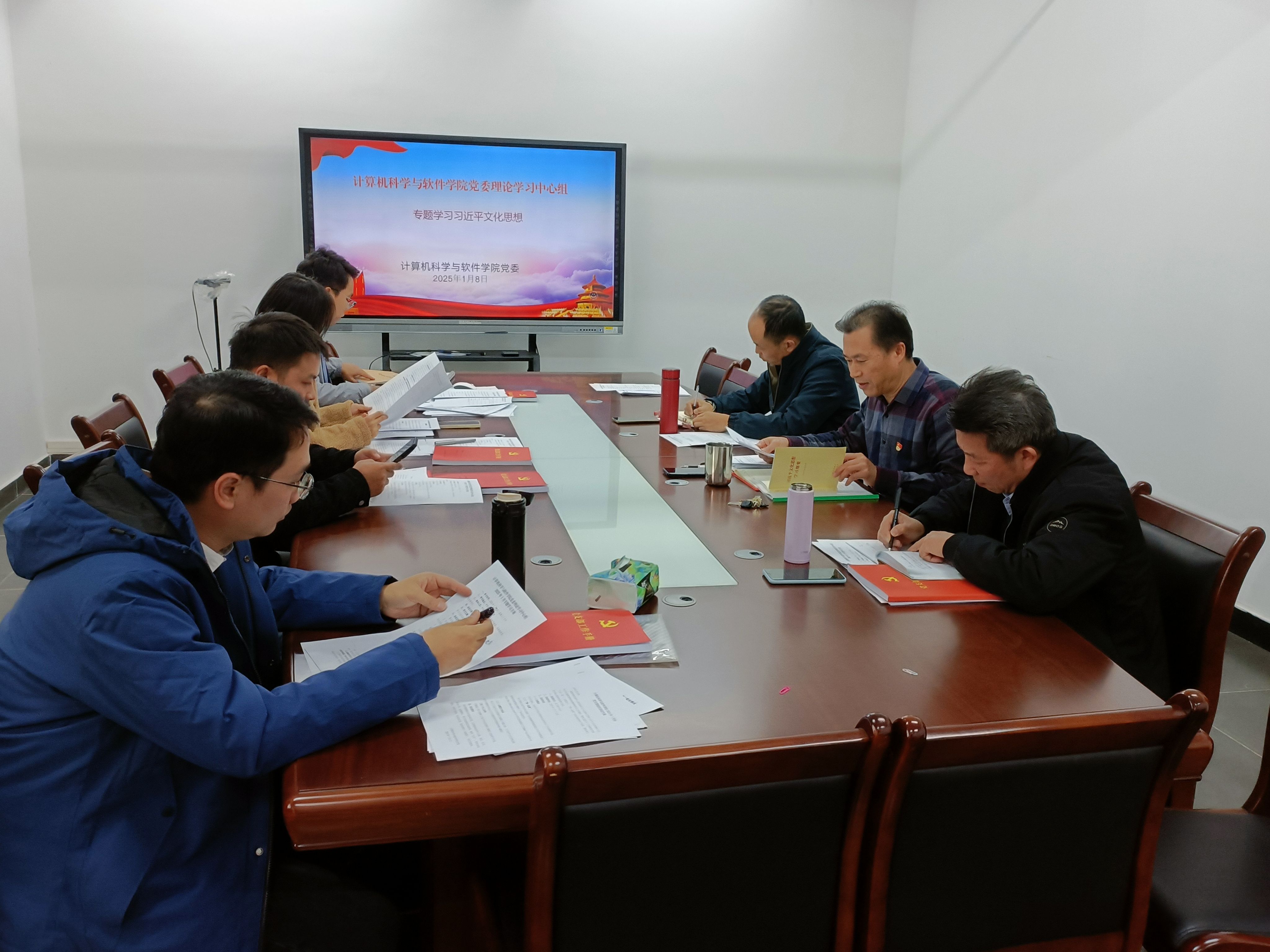 1月8日,学院召开党委理论学习中心组(扩大)会议,开展习近平文化思想专题学习,学院党政班子成员、专职组织员及党支部书记等参加了会议。会议由学院党委书记黎天宇主持。