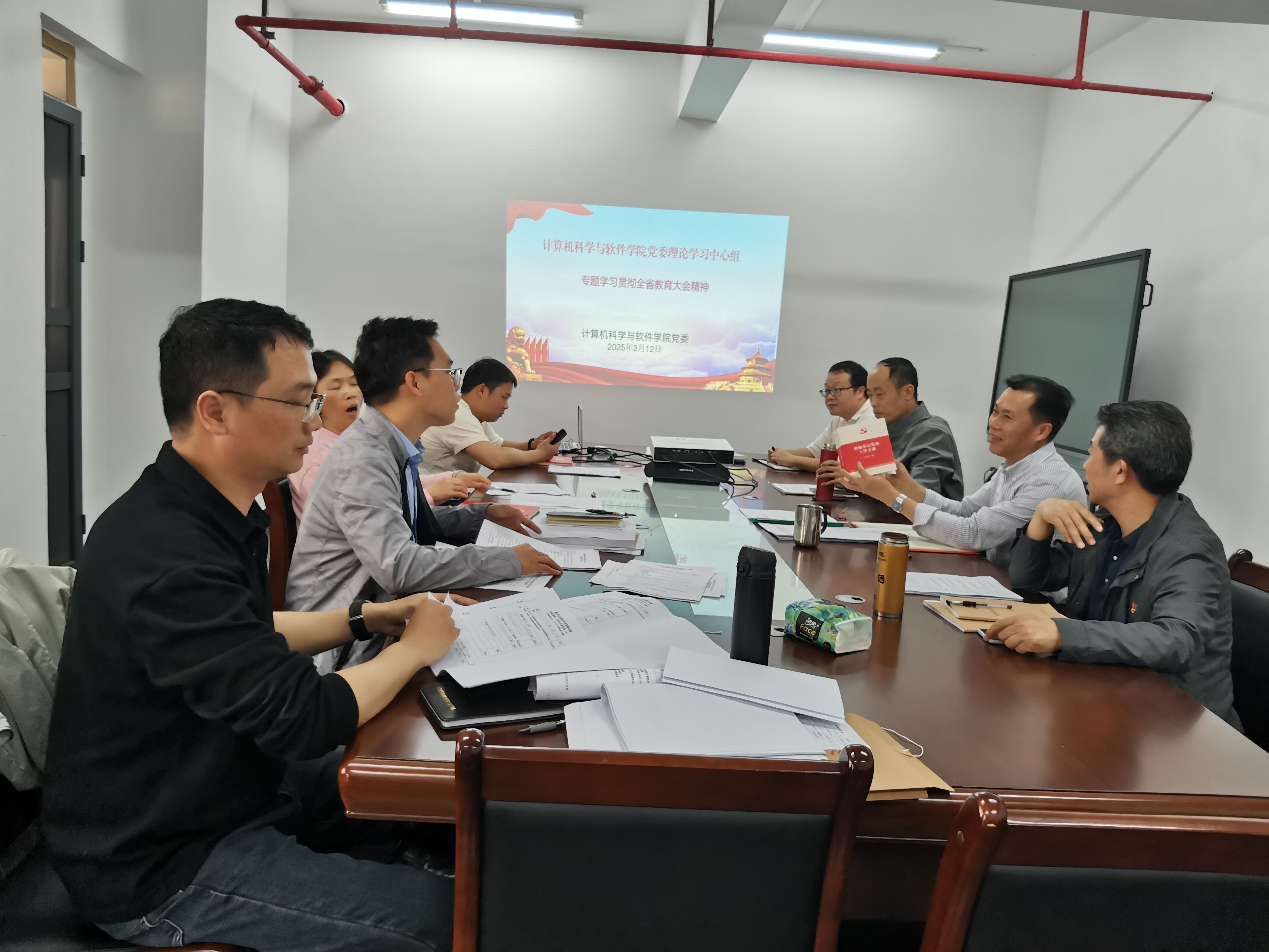 3月12日,学院召开党委理论学习中心组(扩大)会议,开展学习贯彻全省教育大会精神,学院党政班子成员、专职组织员及党支部书记等参加了会议。会议由学院党委书记黎天宇主持。