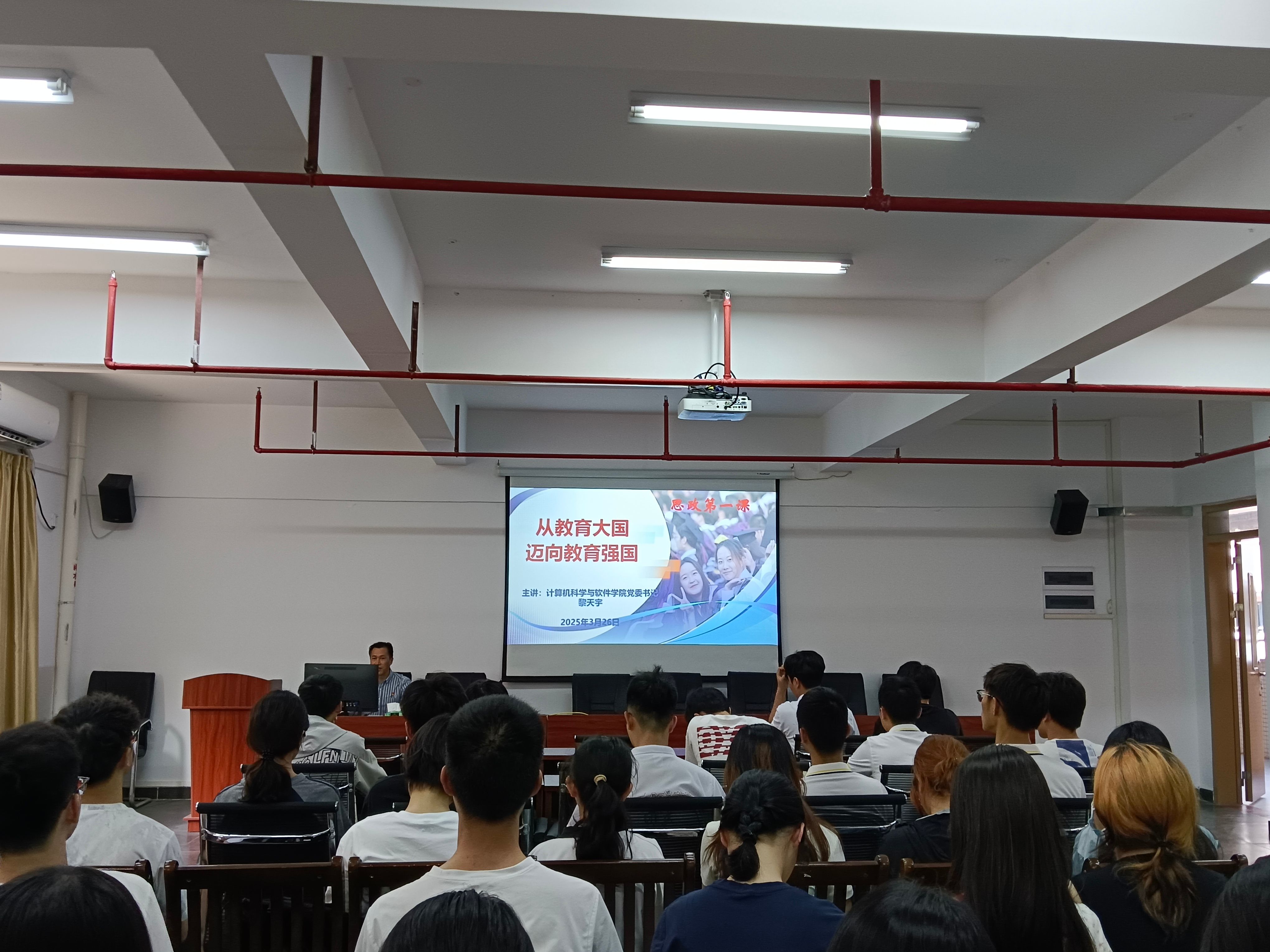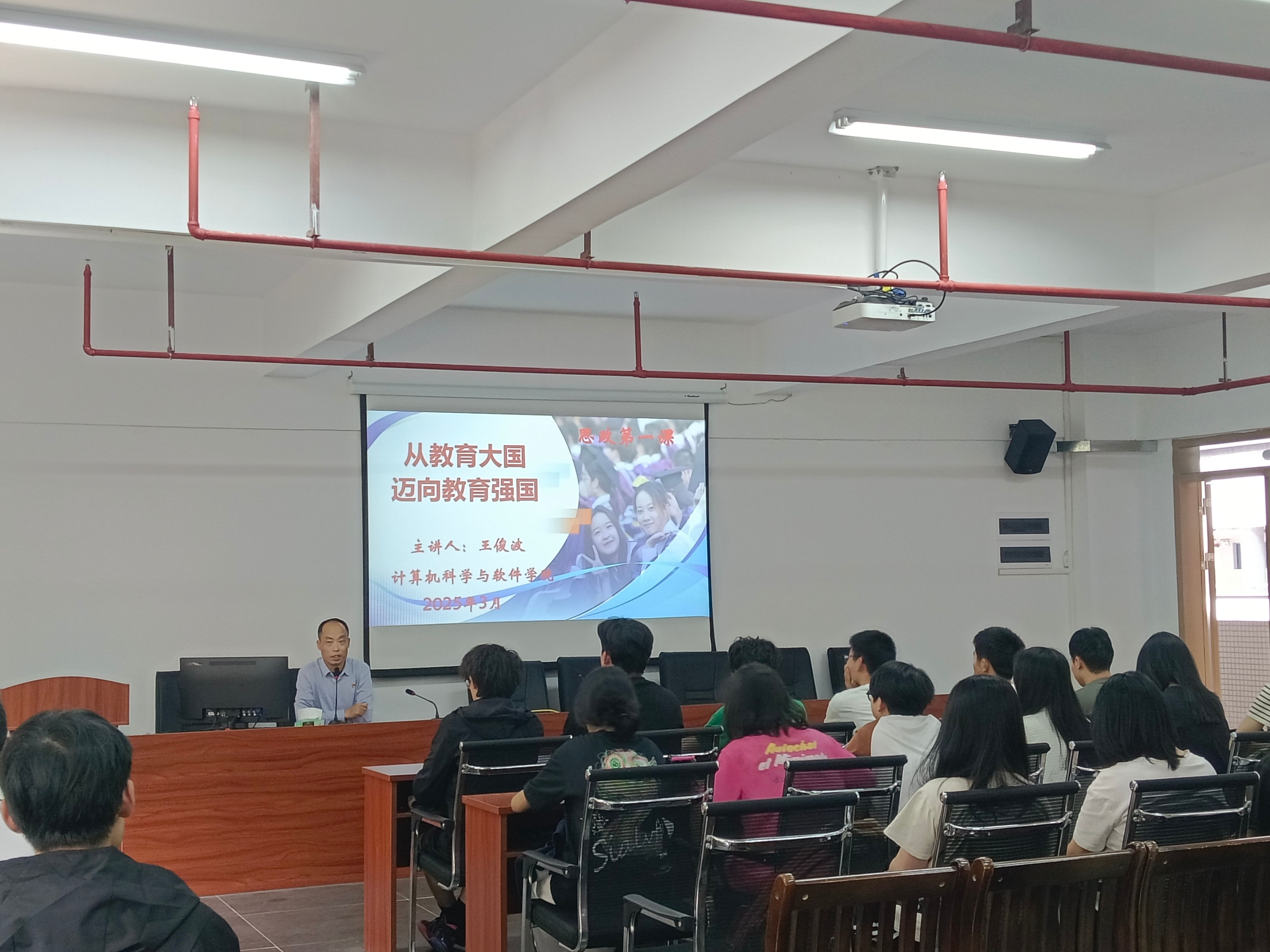 王俊波立足新时代人民群众教育获得感持续提升的时代背景,聚焦学院计算机科学与技术专业培养目标,系统阐释了教育强国的科学内涵,教育引导广大学生深刻认识全国教育大会精神,正确认识学校发展大势,学本领、强技能,接续奋斗、树立信心。
