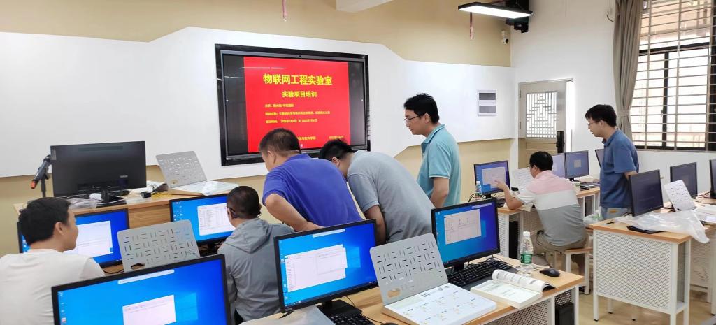 本次培训目的是适应物联网工程专业建设的需要,提升专业实践教学水平,帮助相关教师尽快熟悉和掌握新进物联网工程实施与运维实训平台的使用方法和软件资源的应用方法等。培训过程中,工程师细致入微地讲解、认真耐心地演示,参训老师认真聆听,仔细记录,积极提问,培训现场气氛热烈,大家抓住这次难得的机会向专业工程师学习经验,与同行交流心得,畅所欲言,收获颇丰。通过此次培训,老师们熟练掌握了各类新进实验设备的工作原理和实验仪器的操作方法,为新进实验设备顺利投入教学、科研奠定了基础,同时也宣布物联网工程实验室正式投入运行。